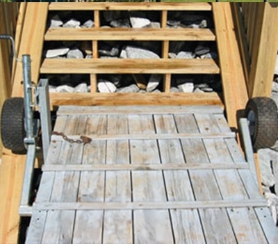 Our wheel assemblies are designed to fit within six-foot-wide shoreline steps.